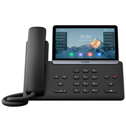 An intuitive business phone designed for busy professionals and executives, featuring a large 7-inch multi-point capacitive touch screen that can be adjusted to a comfortable viewing angle for easy navigation and a smartphone-like user experience. It delivers ultra-high-definition audio using Yealink’s Optimal HD Voice technologies and broadband audio codecs, while built-in AI noise cancellation and Acoustic Shield technology reduce background noise to ensure clear conversations even in busy environments.